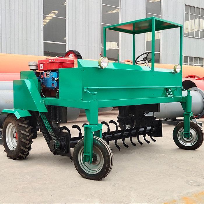 自走式翻堆機(jī)是生產(chǎn)生物有機(jī)肥專用成套設(shè)備中的主機(jī),該機(jī)采取四輪行走設(shè)計(jì),可前進(jìn)、倒退、轉(zhuǎn)彎,由一人操控駕駛。行駛中整車騎跨在予先堆置的長(zhǎng)條形肥基上,由機(jī)架下掛裝的旋轉(zhuǎn)刀軸對(duì)肥基原料實(shí)施翻拌、蓬松、移堆,車過(guò)之后篡成新的條形垛堆。即可在開(kāi)闊場(chǎng)地,也可在車間大棚中實(shí)施作業(yè)。該機(jī)一大技術(shù)突破在于整合了物料發(fā)酵后期的破碎功能。隨著物料逐漸脫水,加裝破碎裝置的刀軸可有效地破碎肥料在發(fā)酵過(guò)程中形成的板塊,不僅省去了一臺(tái)粉碎機(jī),更主要的大大提高了粉碎的效率,降低了成本。